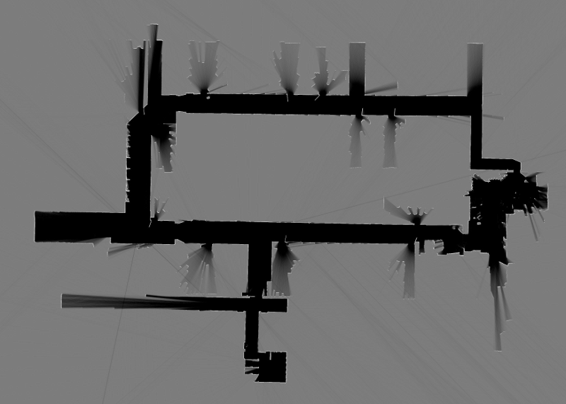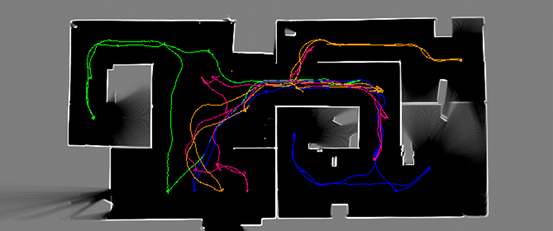 At the end of the mission, the data from each robot is centralized and a single map is created. Rooms of the environment are extracted and the results are gathered into a single file as illustrated in the following figure. All the captures are collated and integrated to create a single 3D map.